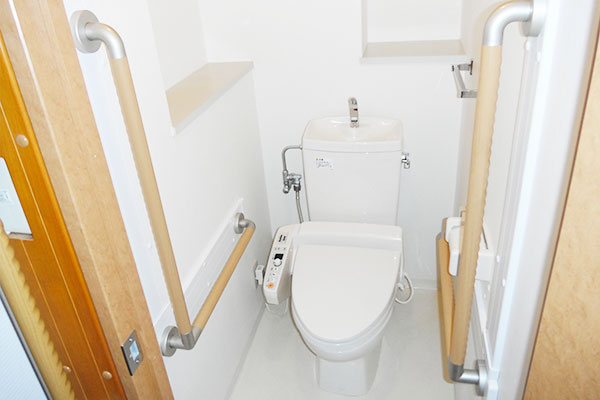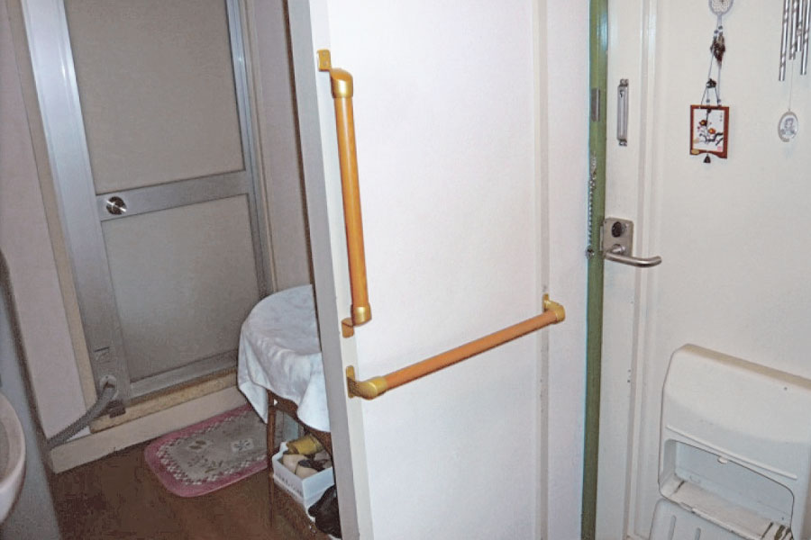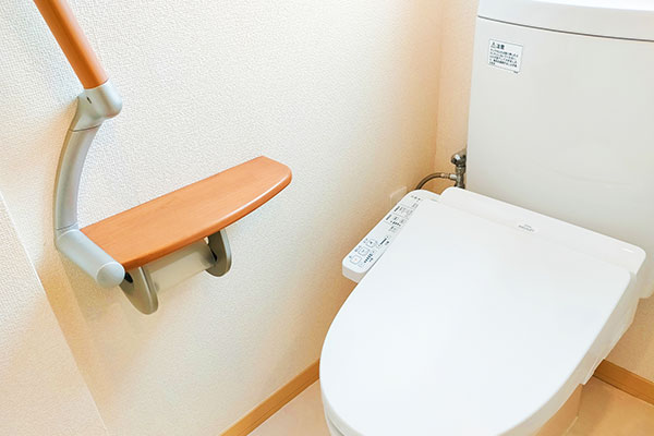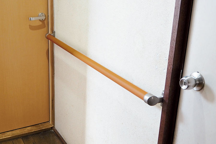 トイレでの動作を補助するため、握りやすい手すりを設置しました。