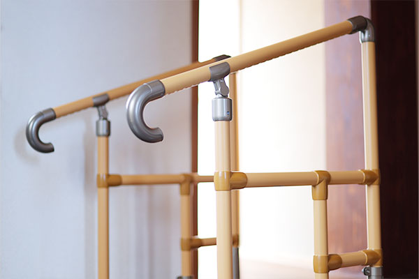立ち座りや方向転換を補助するため、室内に置き型の手すりを設置しました。